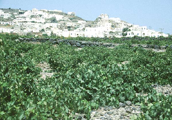 The wine of Santorini is strong and tasty. It is produced using the local grapes which are not watered properly as the island is rather dry. Nevertheless the fertile soil - due to the volcano - gives a special identity to the grapes and to the wine produced by them.