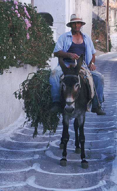 Tinos is the third largest of the Cyclades after Andros and Naxos. The island is 197 square kilometres and it has a population of around 8,000. The island lies between Andros and Mykonos. The highest mountain on the island is called Tsiknias (725 metres) In the centre of the island the mountain known as Xobourgo (640 metres), complete with ruined castle, dominates the area. Strong winds blow almost all year and are a serious problem, especially for farmers, although it was often claimed that the winds created a very healthy climate by blowing away the causes of illness. There are several fertile valleys and a small plain and the island is home to mineral deposits including a unique white and green marble. The island is divided into three districts: a) the Epano Meri (Upper Parts) include the settlements to the south of the island. These include both Catholic and Orthodox settlements. b) The Kato Meri (Lower Parts) include the settlements in the central part of the island, all of which are inhabited by Catholics except for Sklavochori. c) The Oxo Meri (Outer Parts) include the villages of the north-western part of the island. All the villages are orthodox except for Kardiani which is mixed.